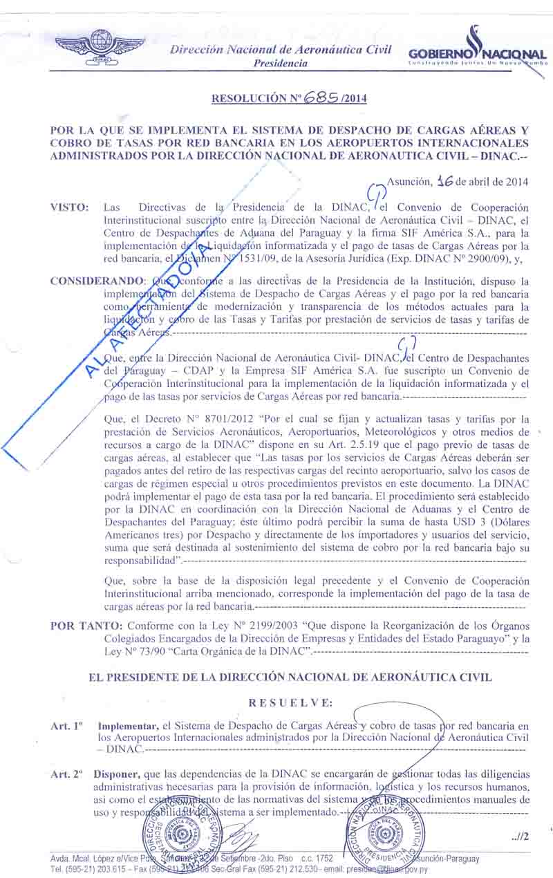 Resolución 150/2014 por la que se autoriza la implemantación del Sistema IFPL (Internet Flight Plan), para la presentación del Plan de Vuelo y Liquidación de los servicios por vía electrónica.